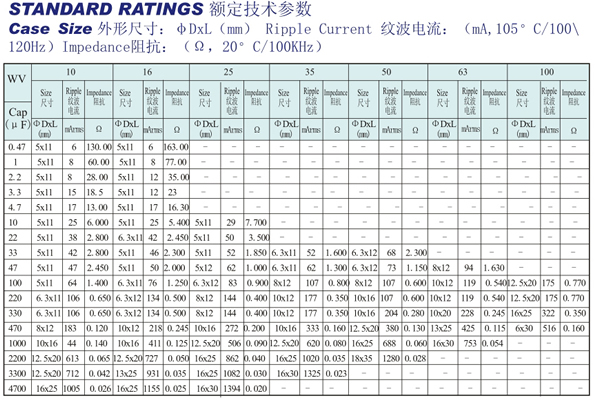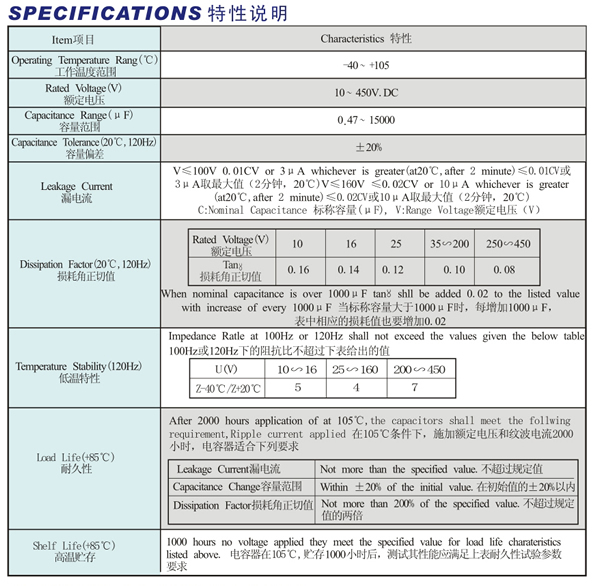 寿命:105℃ ,2000小时或85℃ ,8000小时
