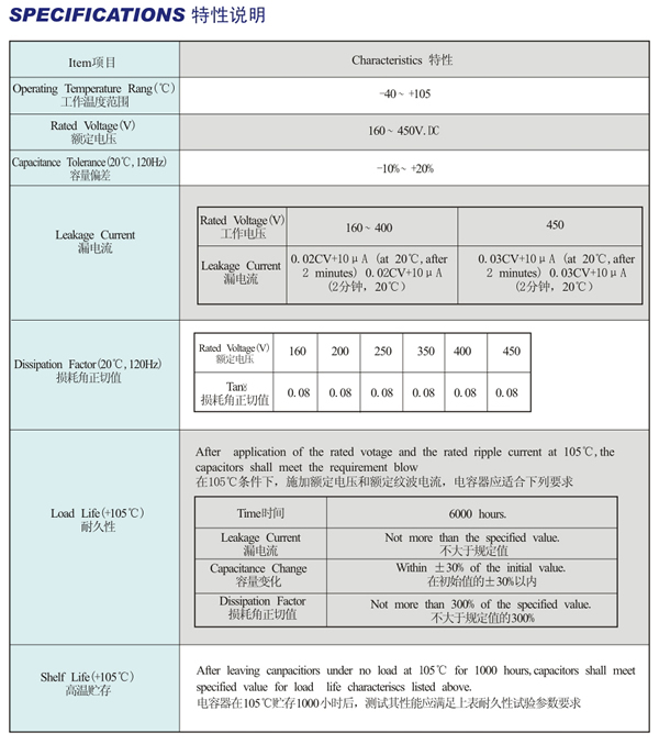 Life time:105℃,6000 hours