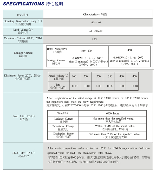 Life Time:125 ℃ ,3000 hours or 105 ℃,12000 hours